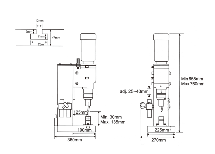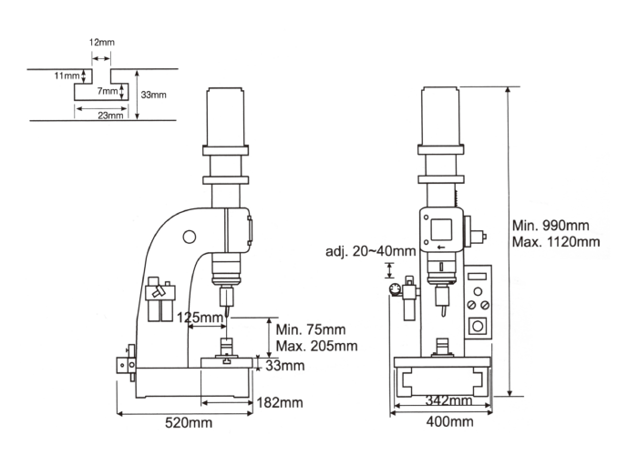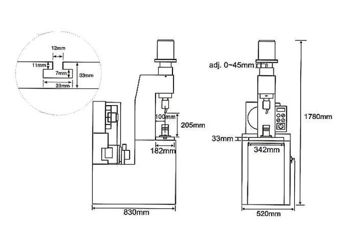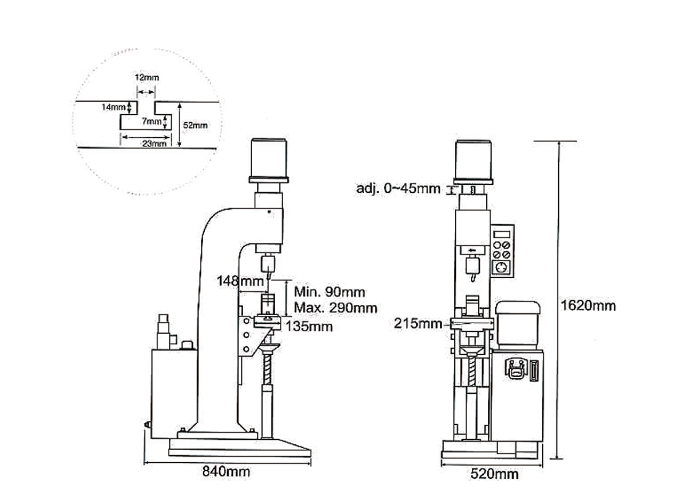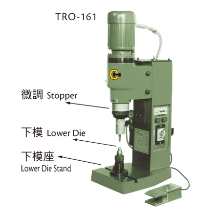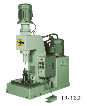 精確的行程設定︰精密度高達0.01mm。利用微調螺帽,可以精確的設定夾頭行程。操作安靜,可提供一個很好的工作環境。設定簡單,操作容易,不需任何經驗。每部鉚釘機都附有計數器、可以隨時得知工作量。本公司亦生產多軸及臥式兩端鉚釘機,更具工作效率。可另外選購直立式夾頭、當壓床使用。
